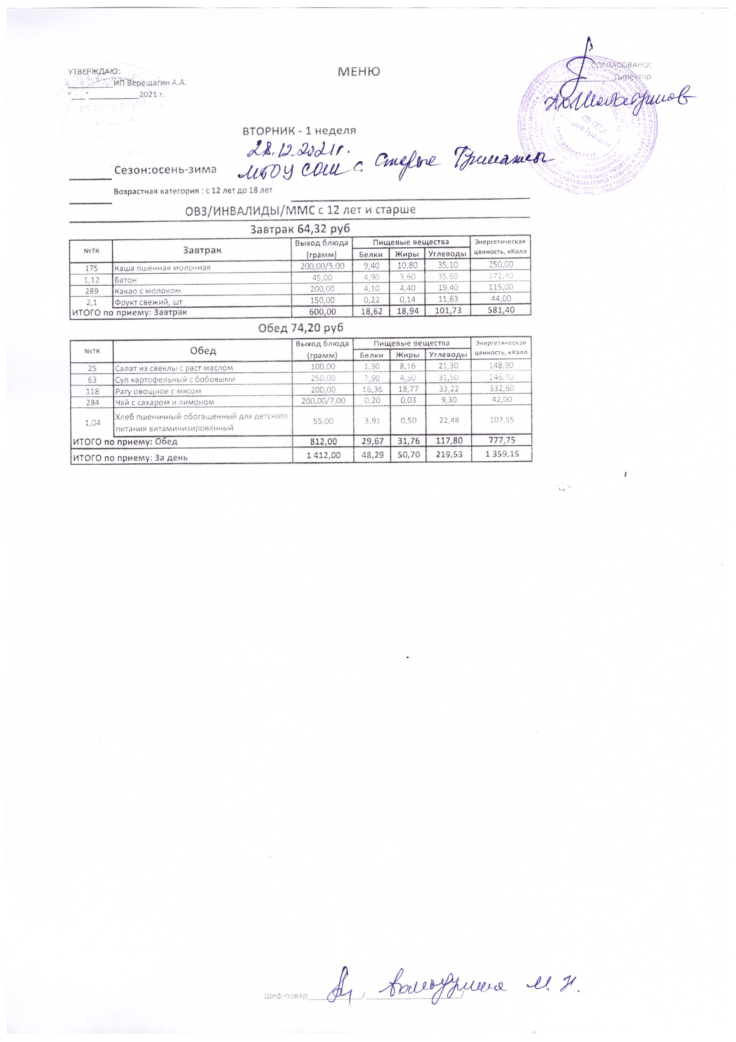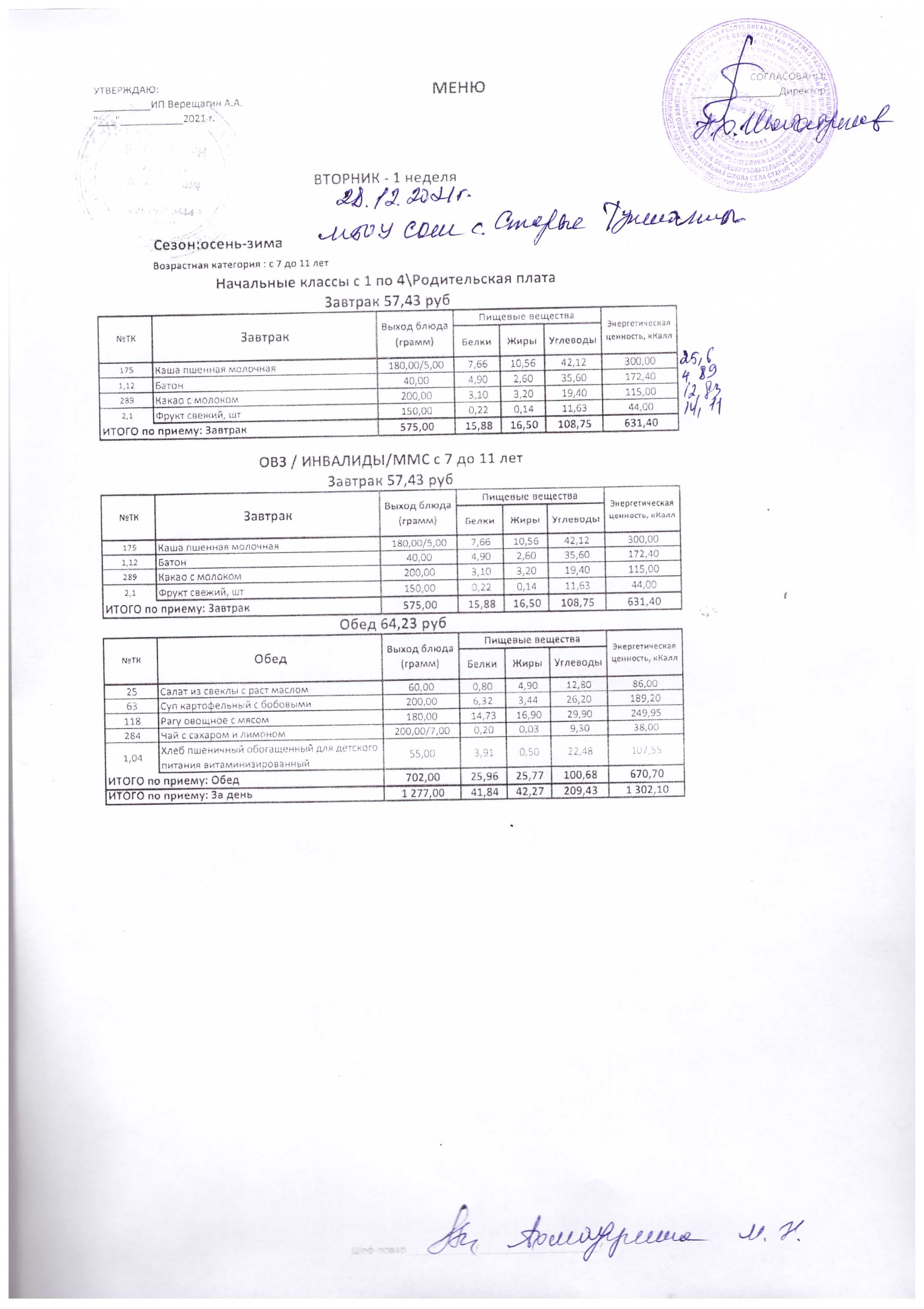 (Меню на 28.12.2021 г.)