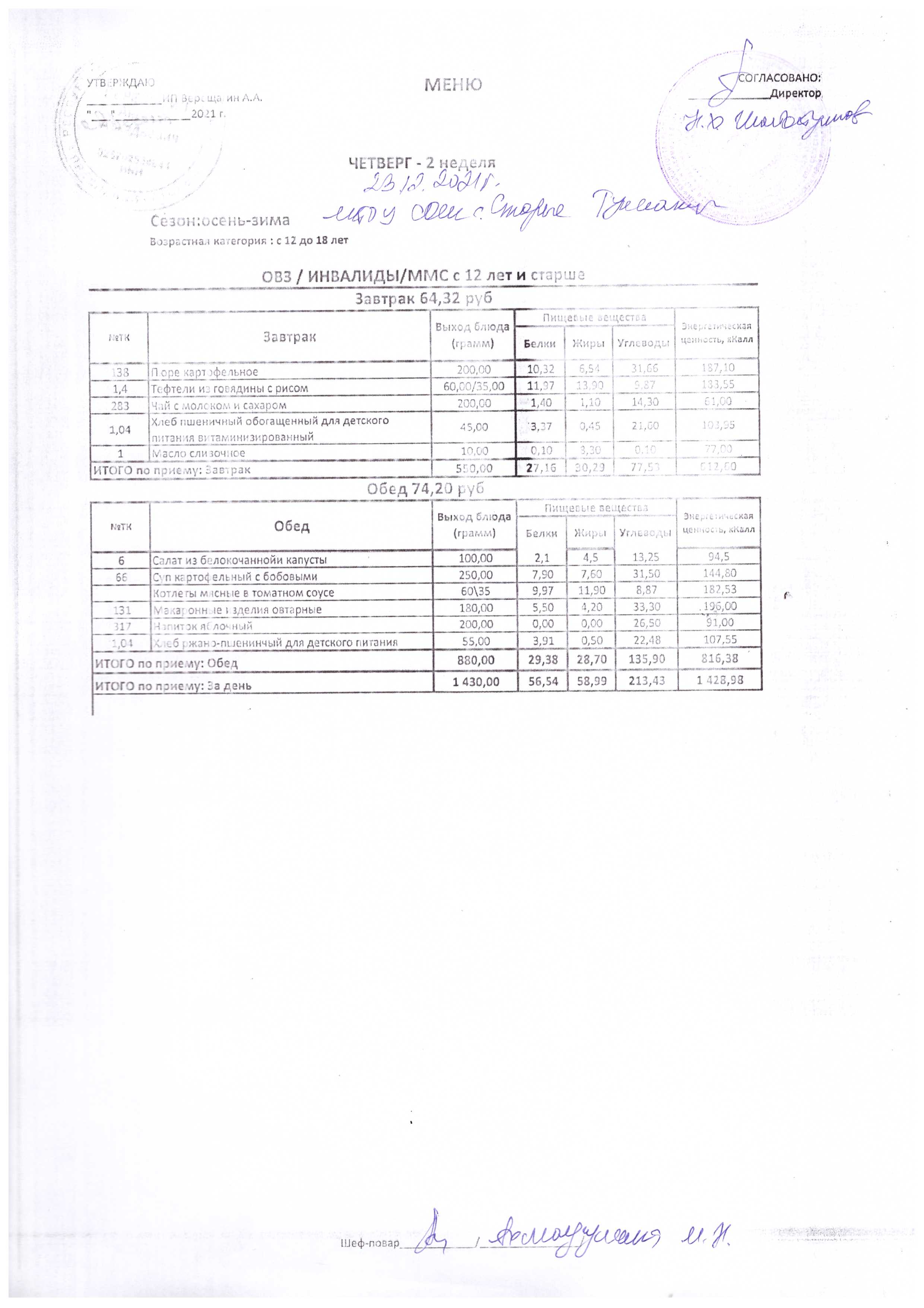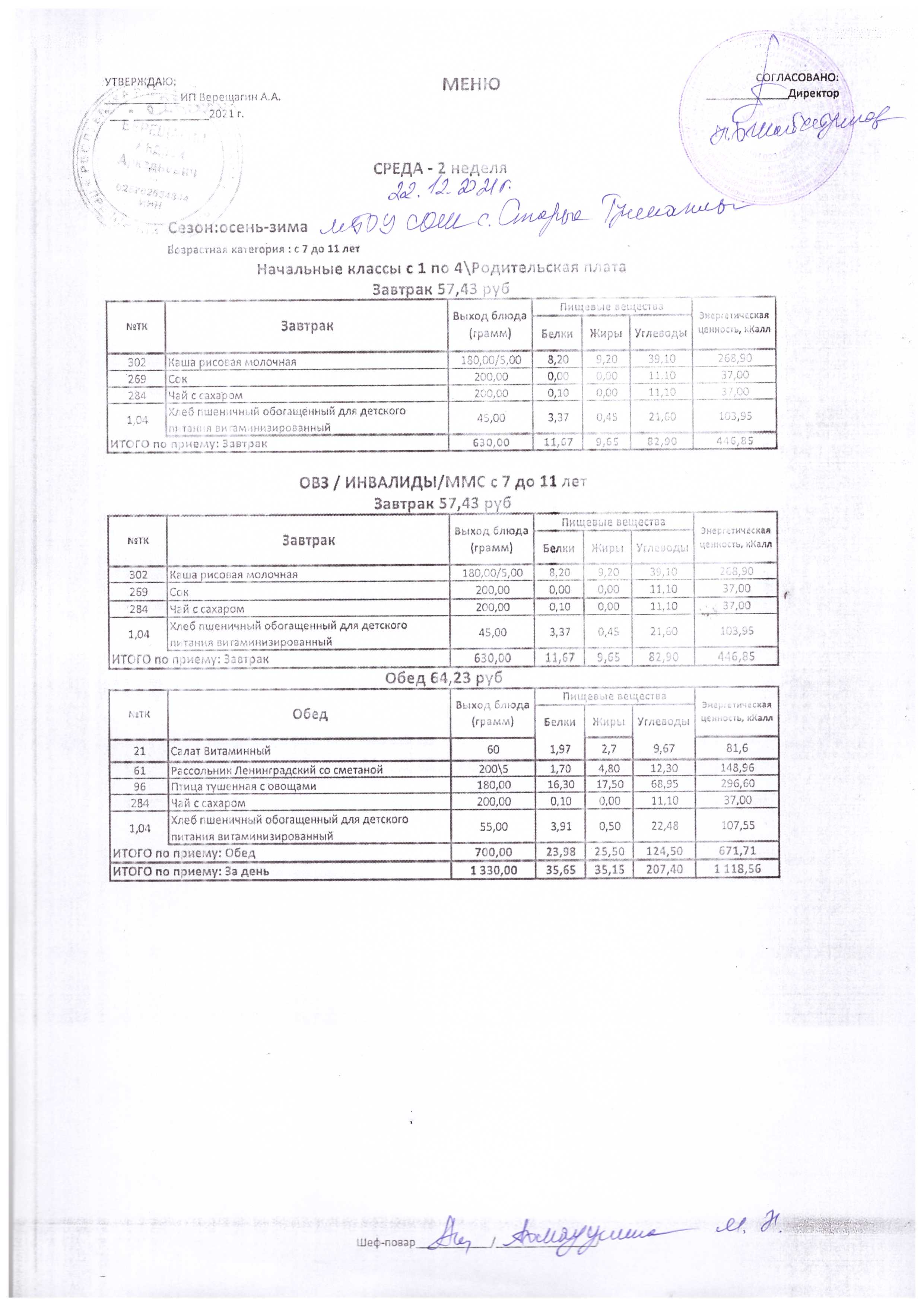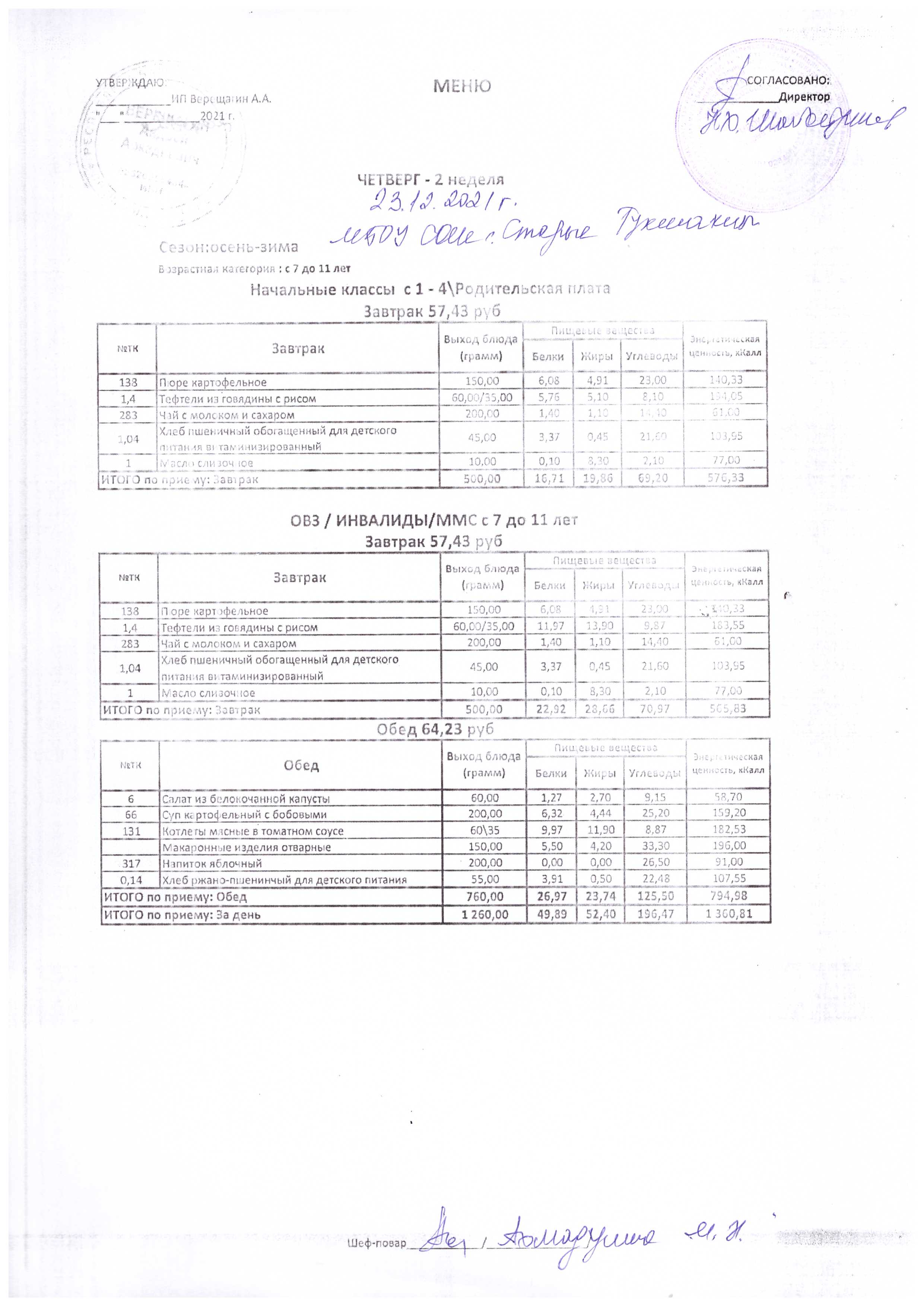 (Меню на 23.12.2021 г.)