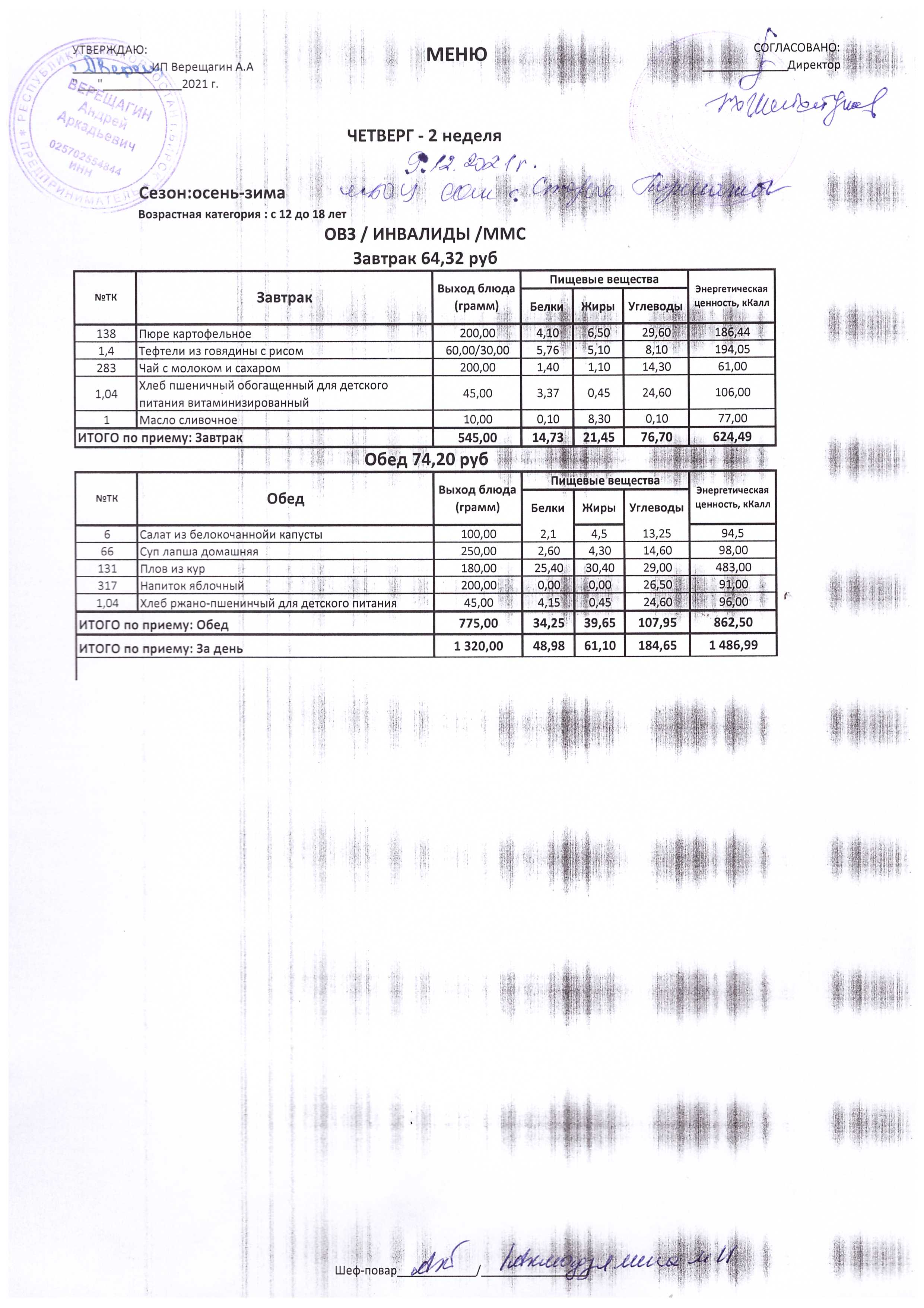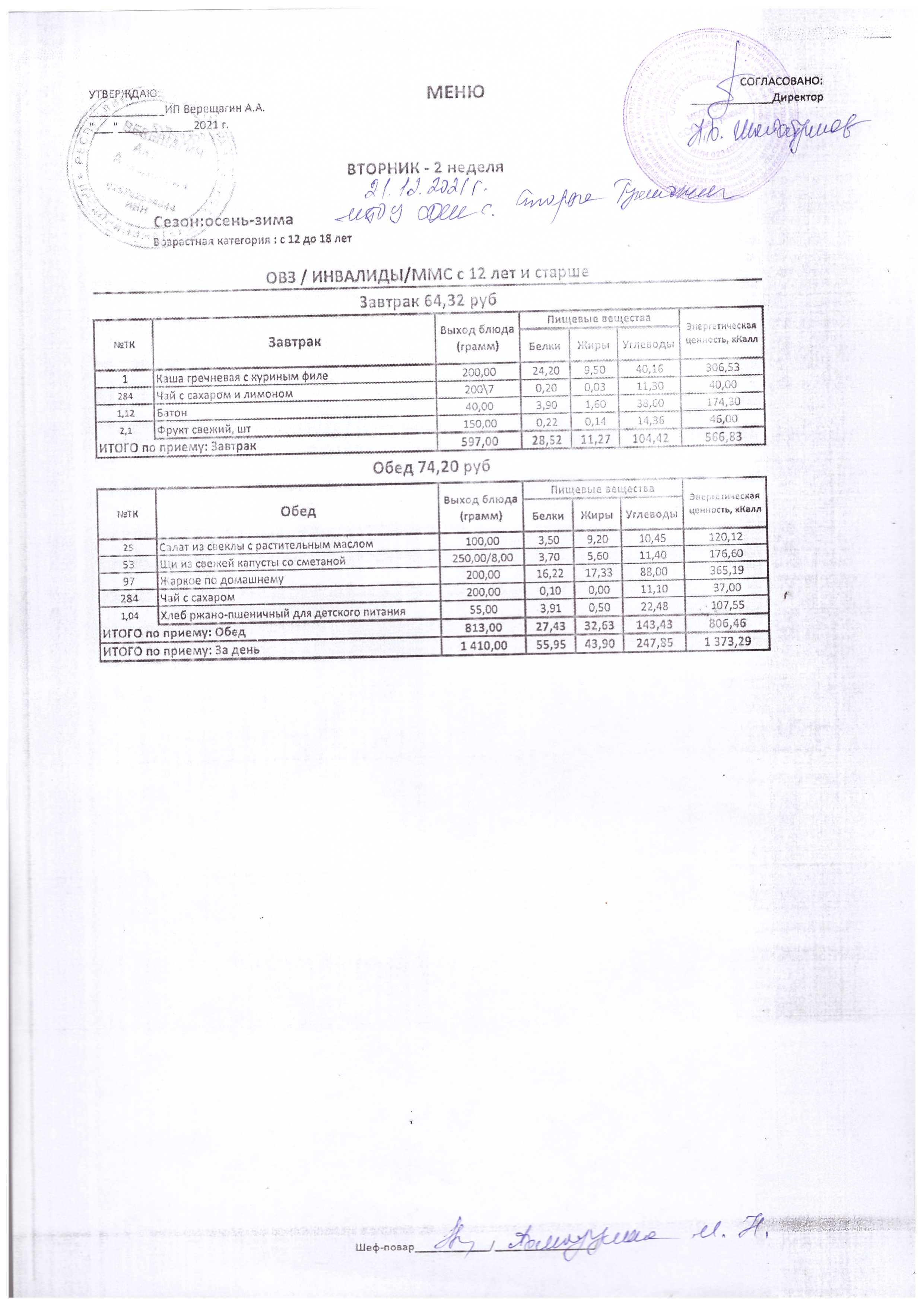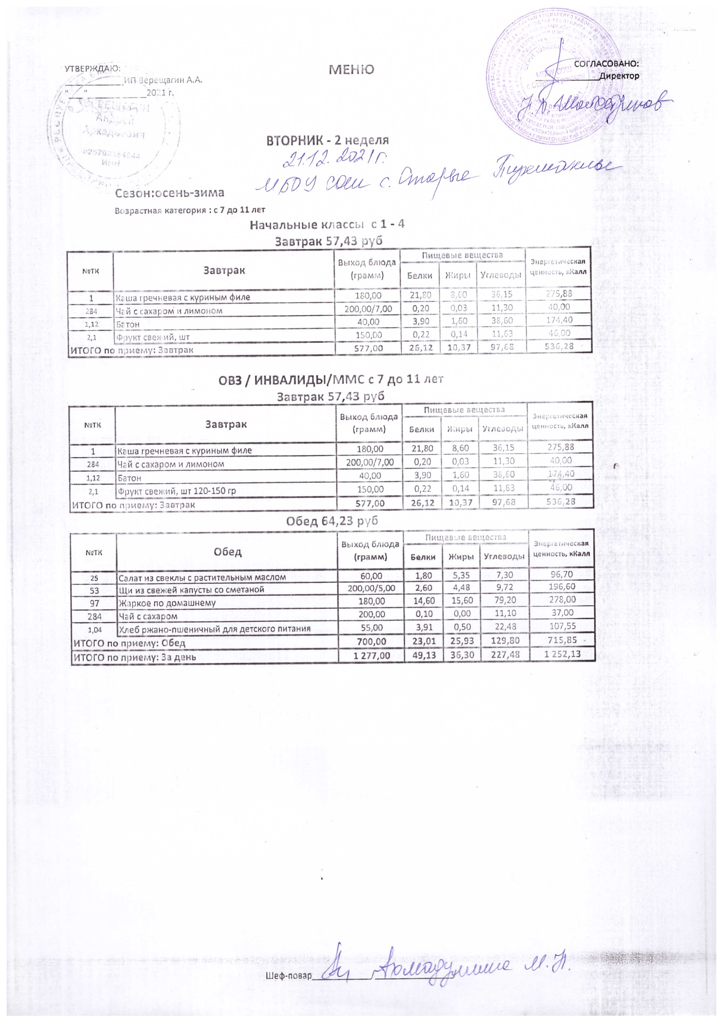 (Меню на 21.12.2021 г.)