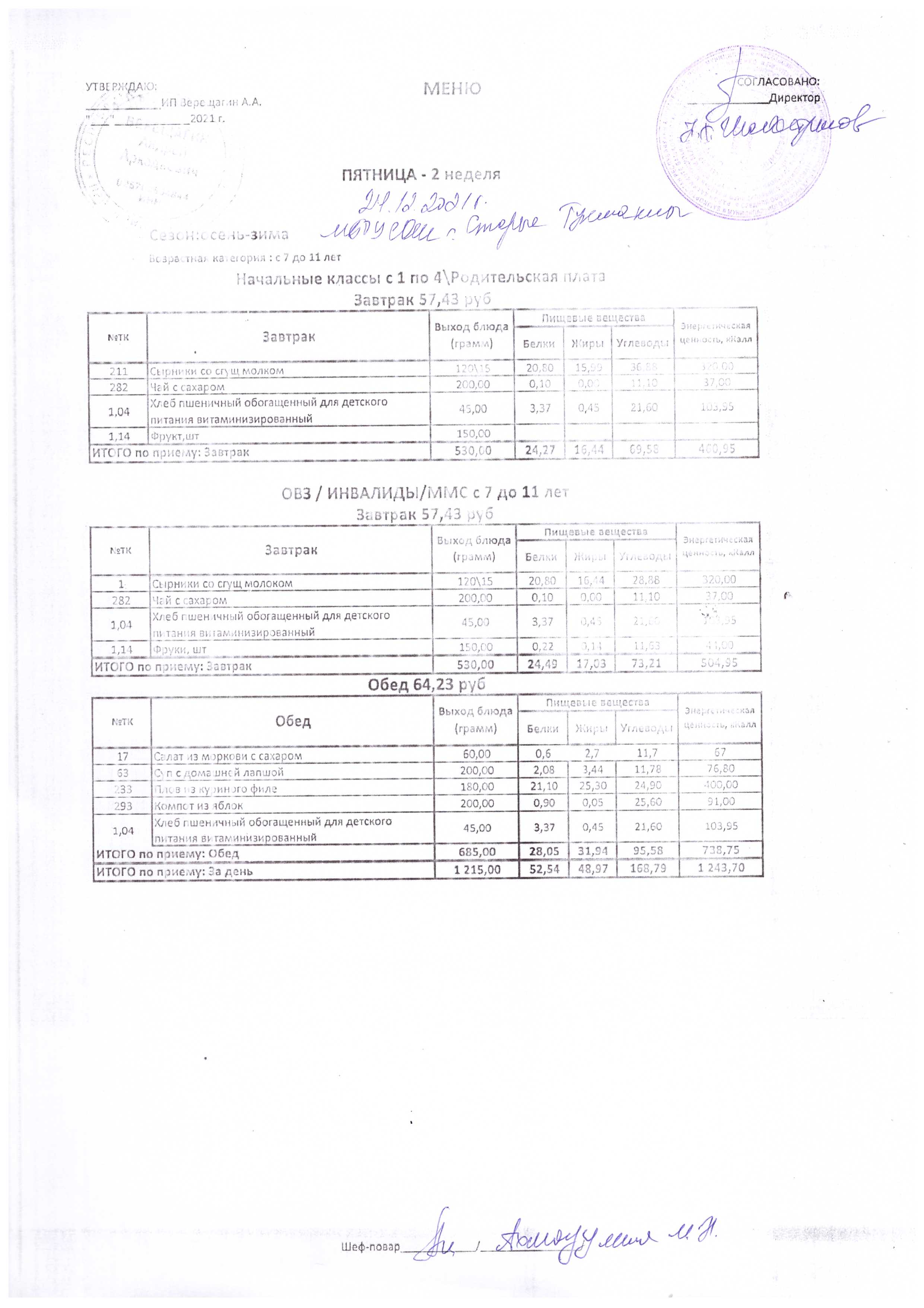 (Меню на 24.12.2021 г.)