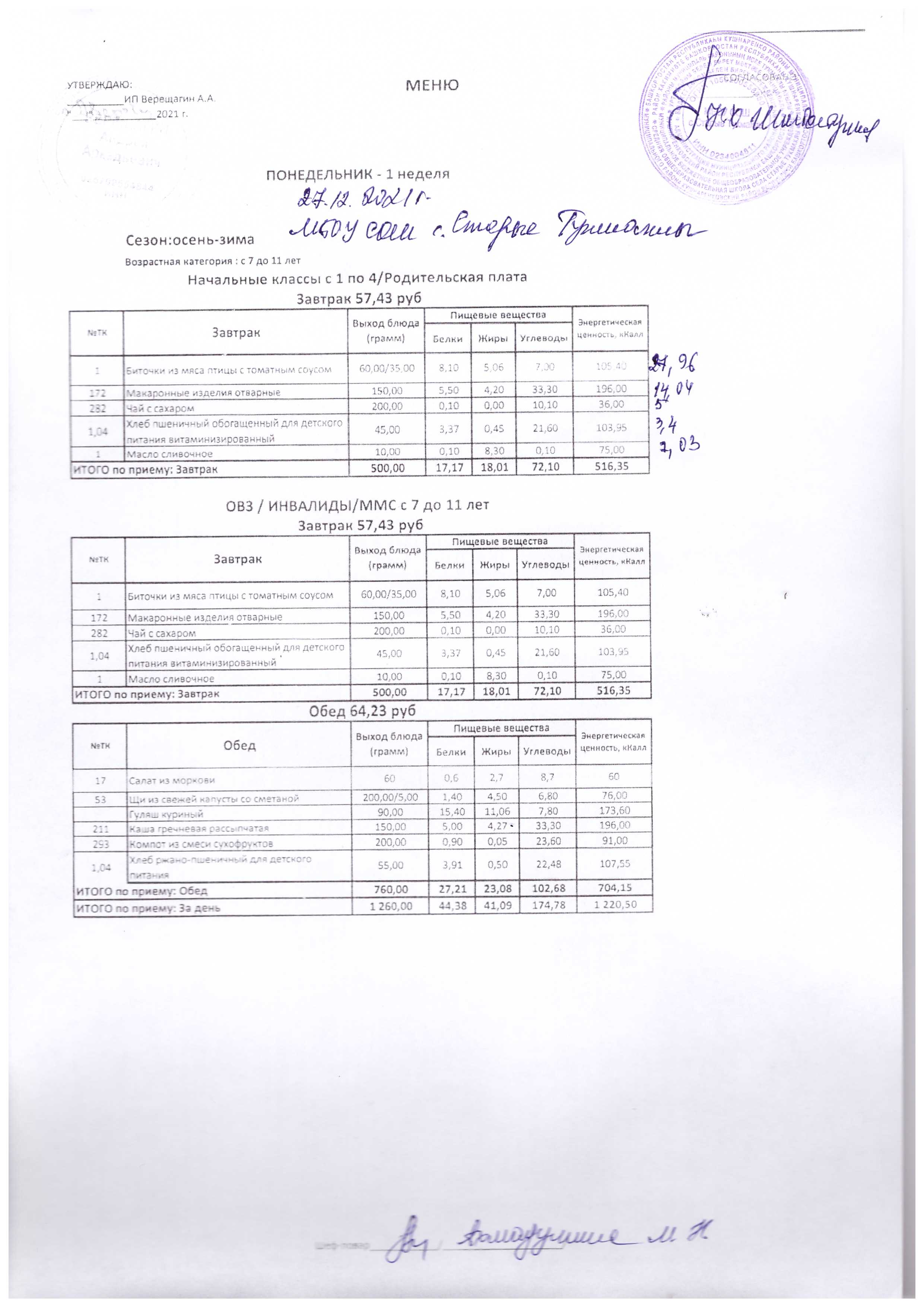 (Меню на 27.12.2021 г.)