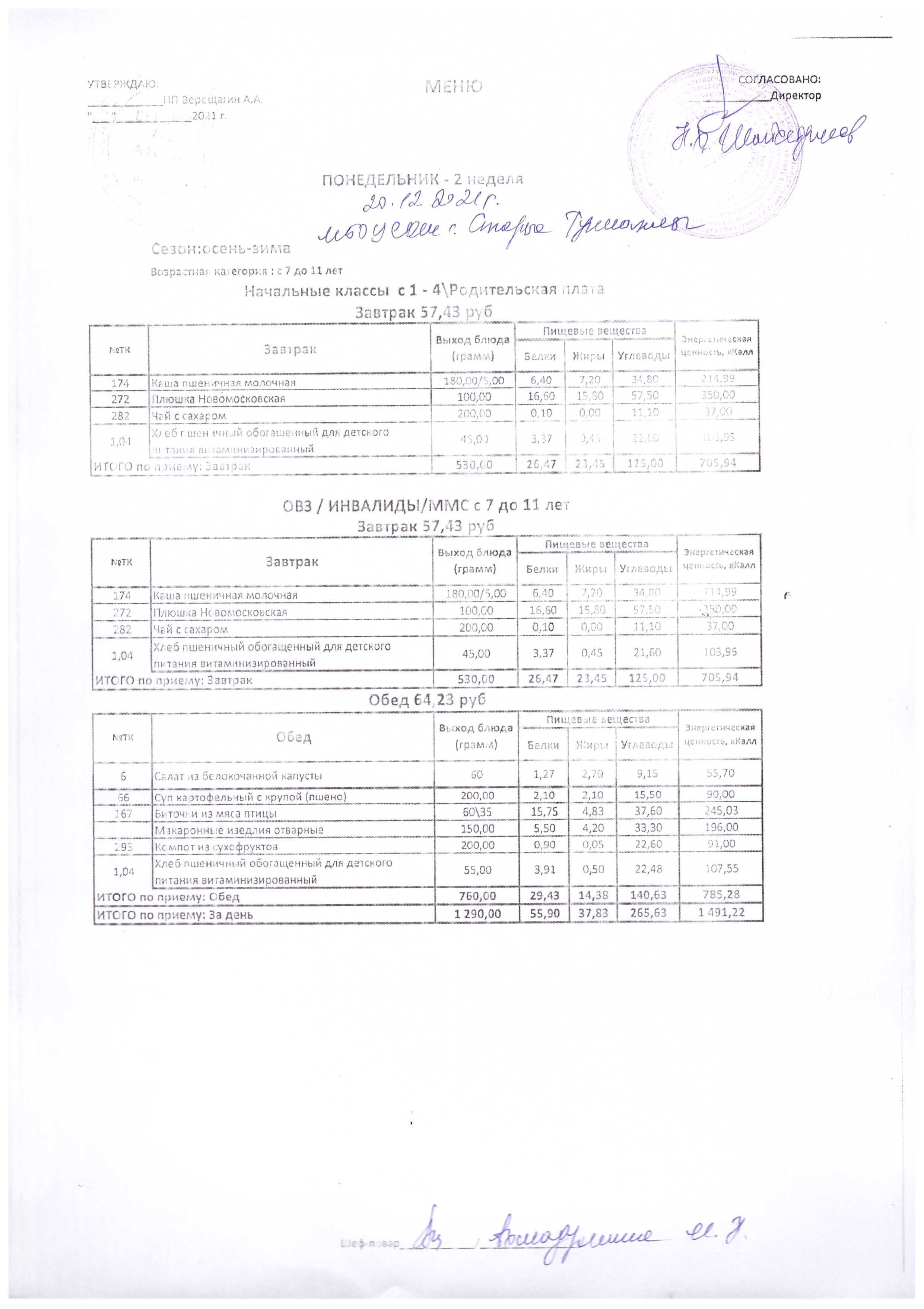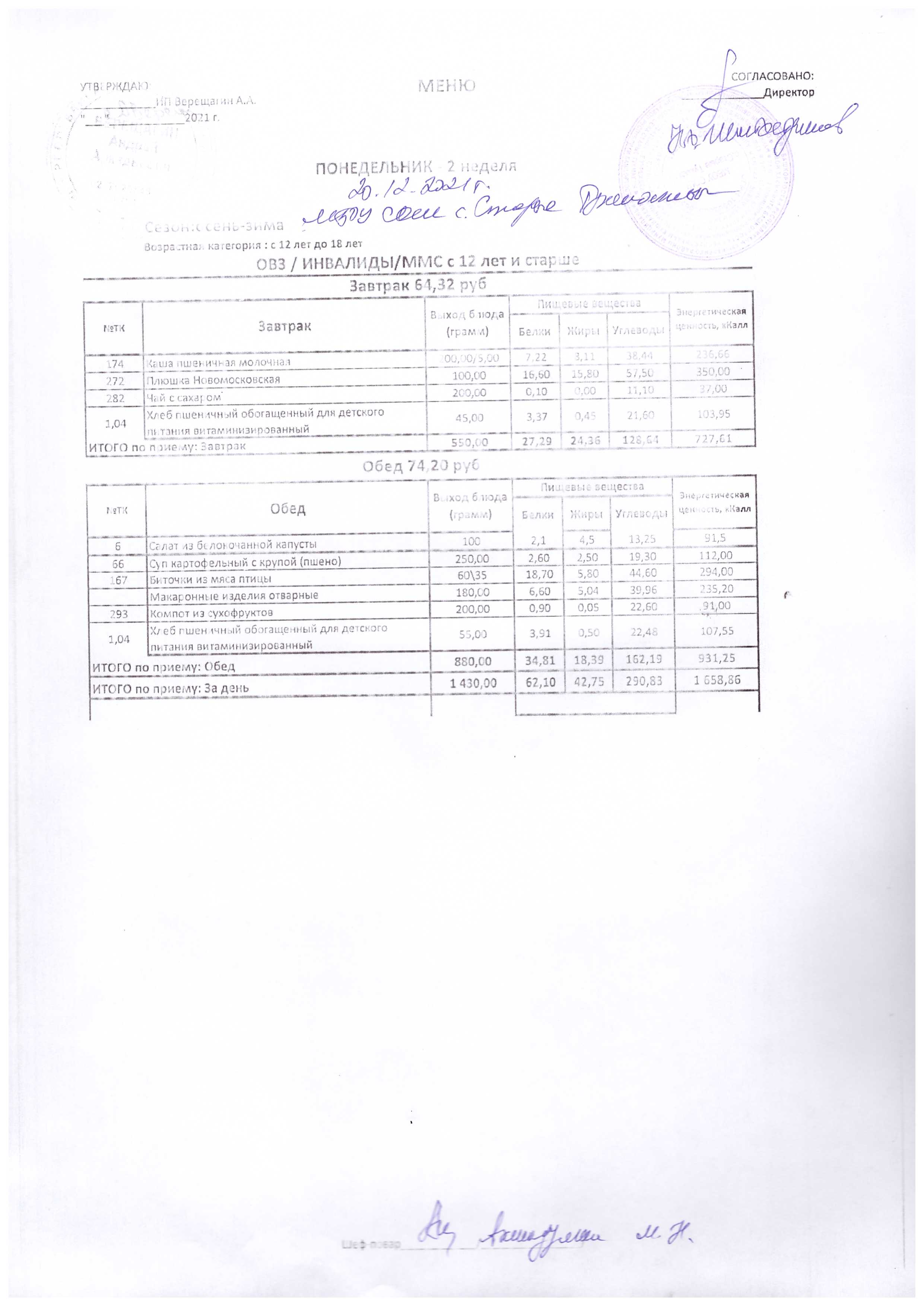 (Меню на 20.12.2021 г.)