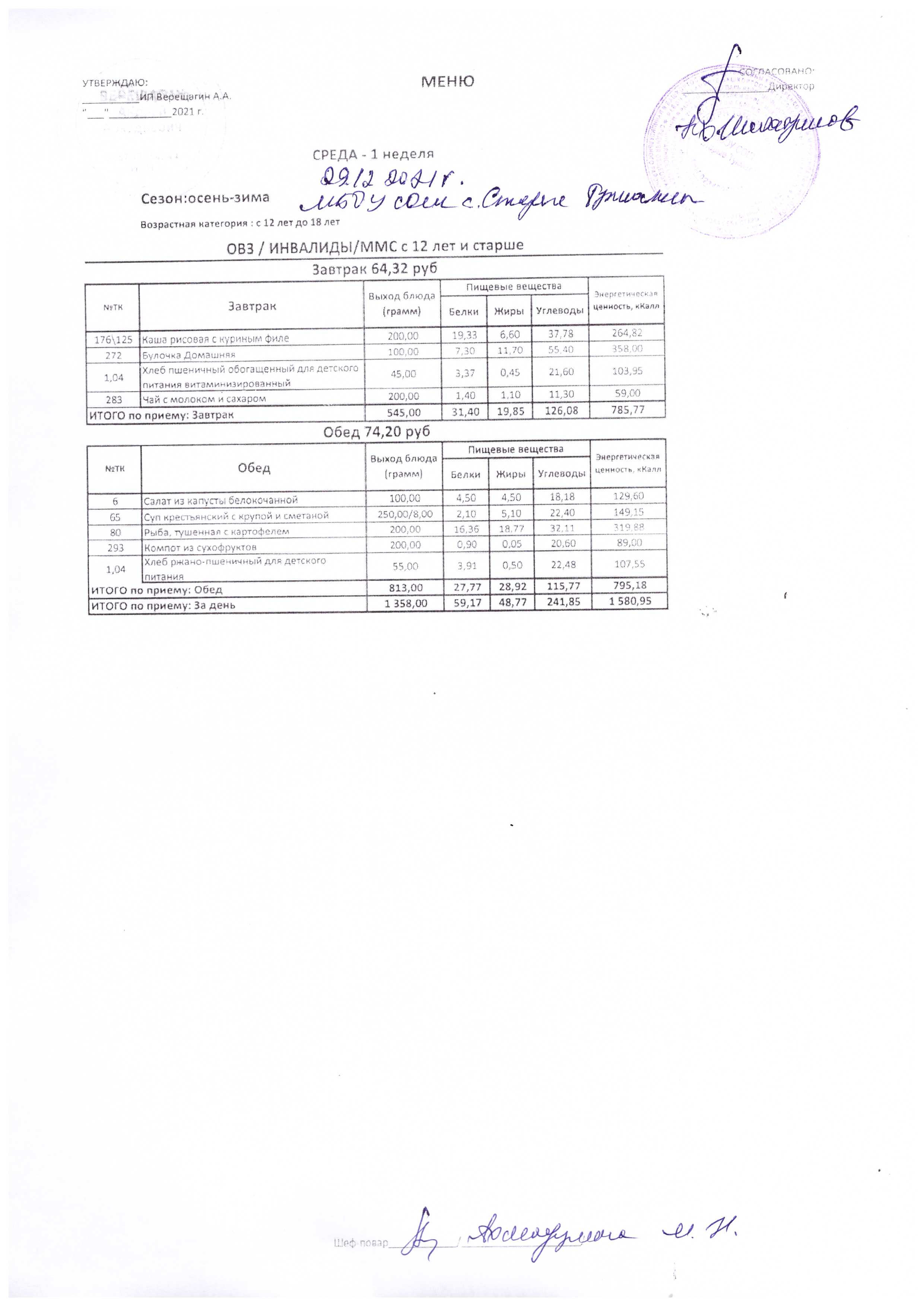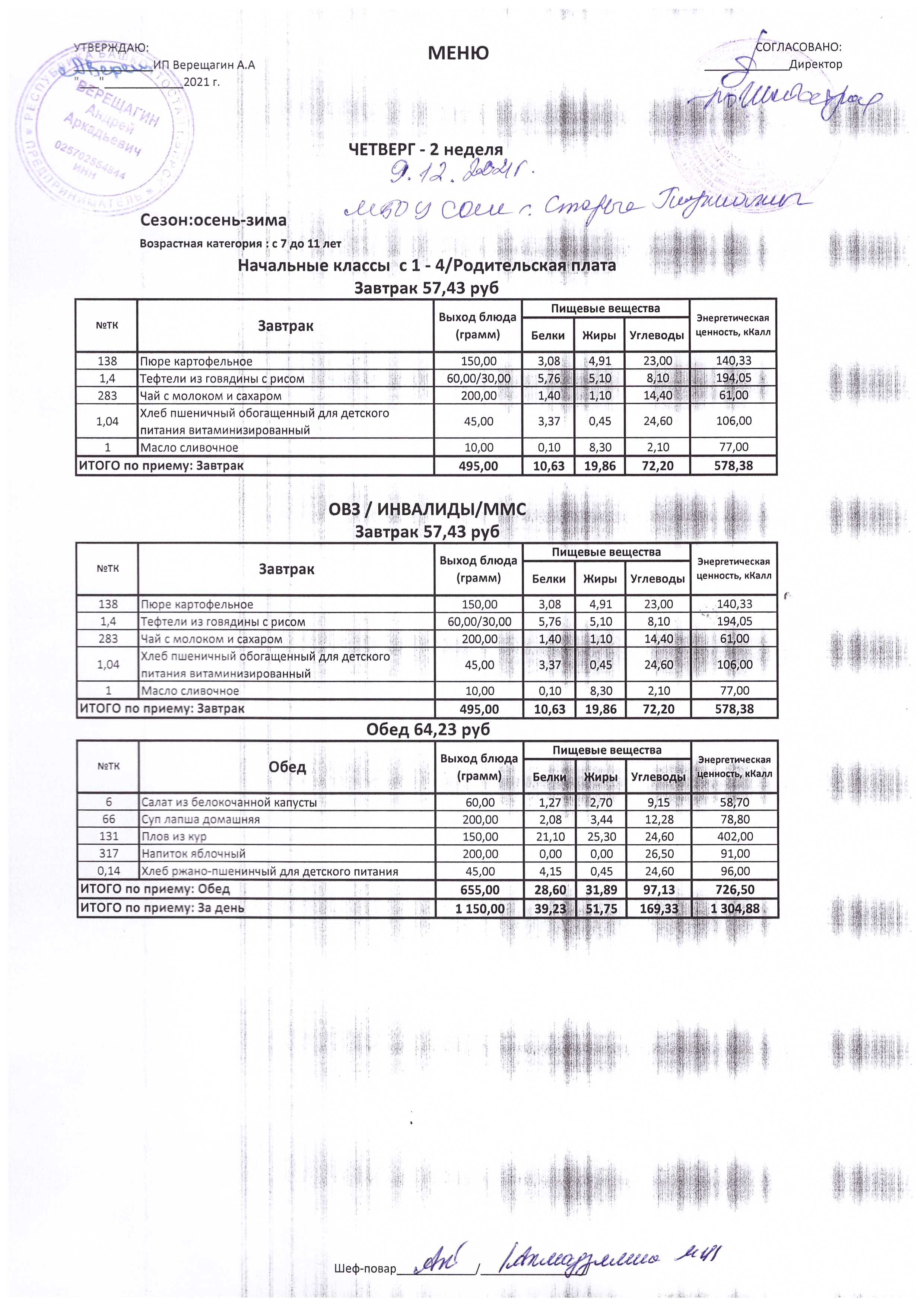 (Меню на 09.12.2021 г.)