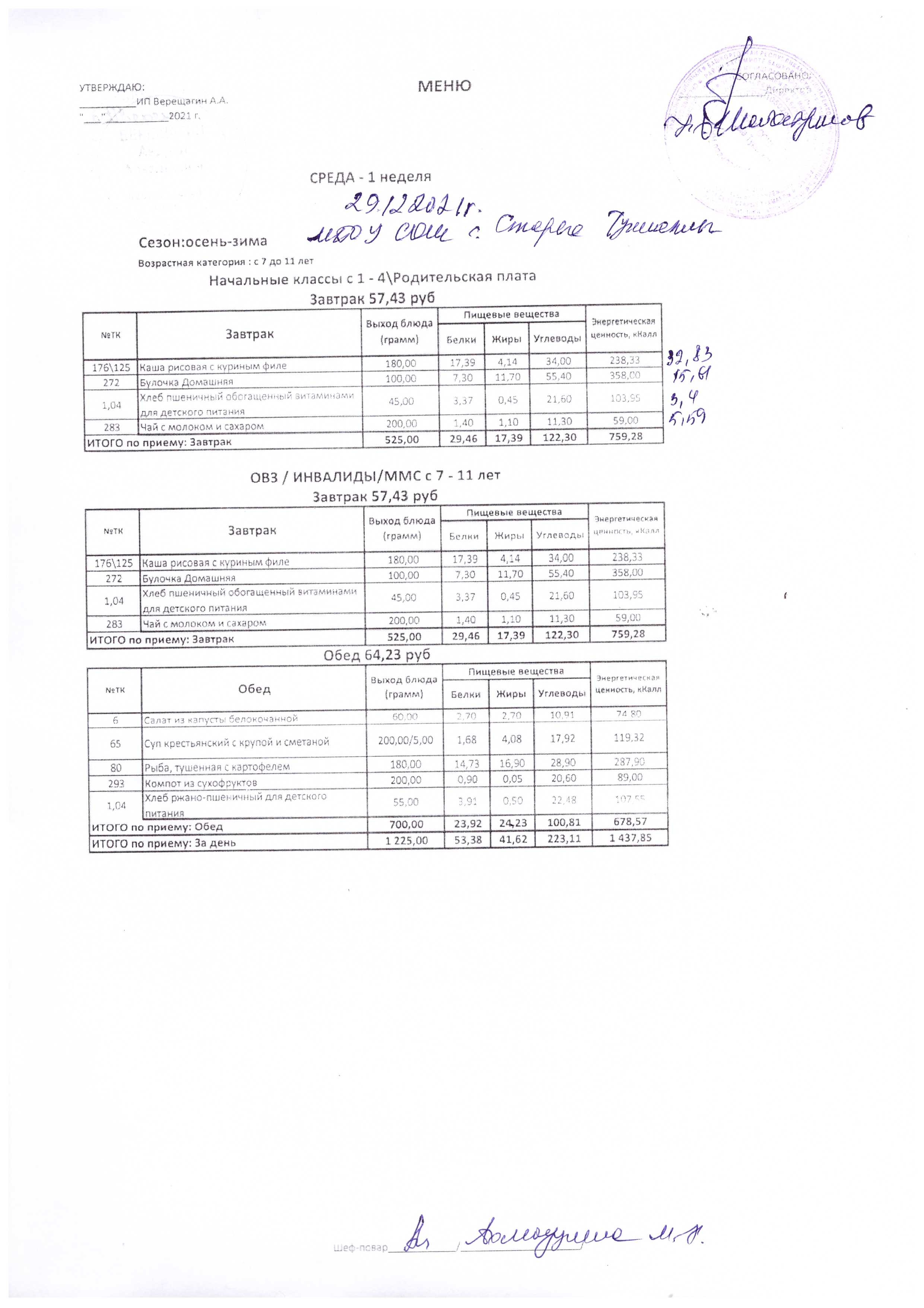 (Меню на 29.12.2021 г.)
