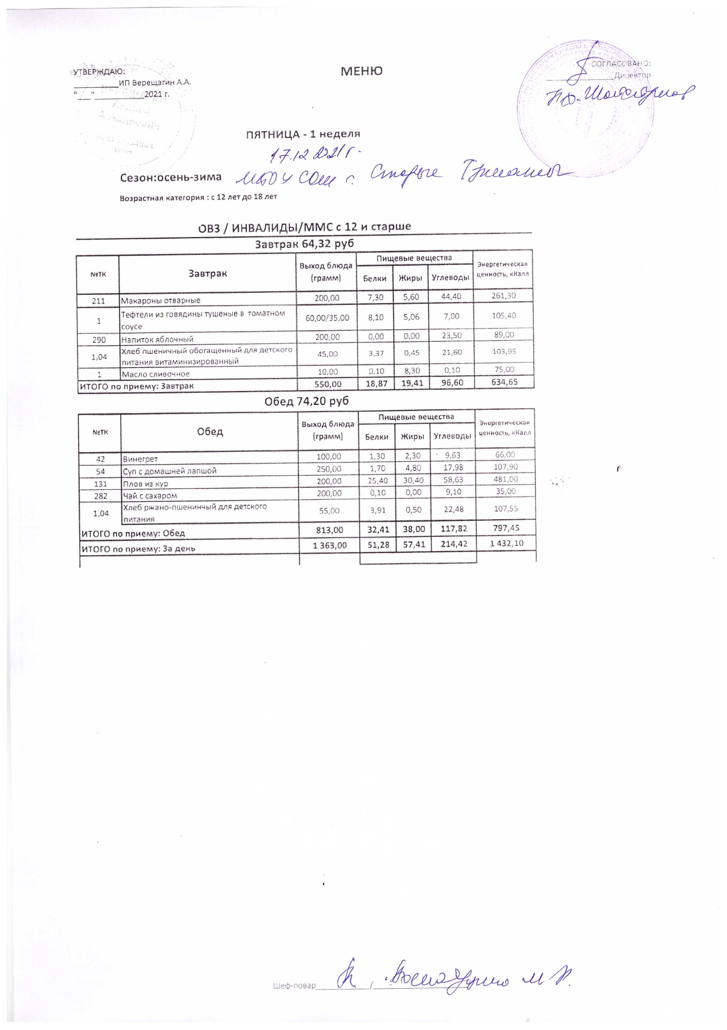(Меню на 17.12.2021 г.)
