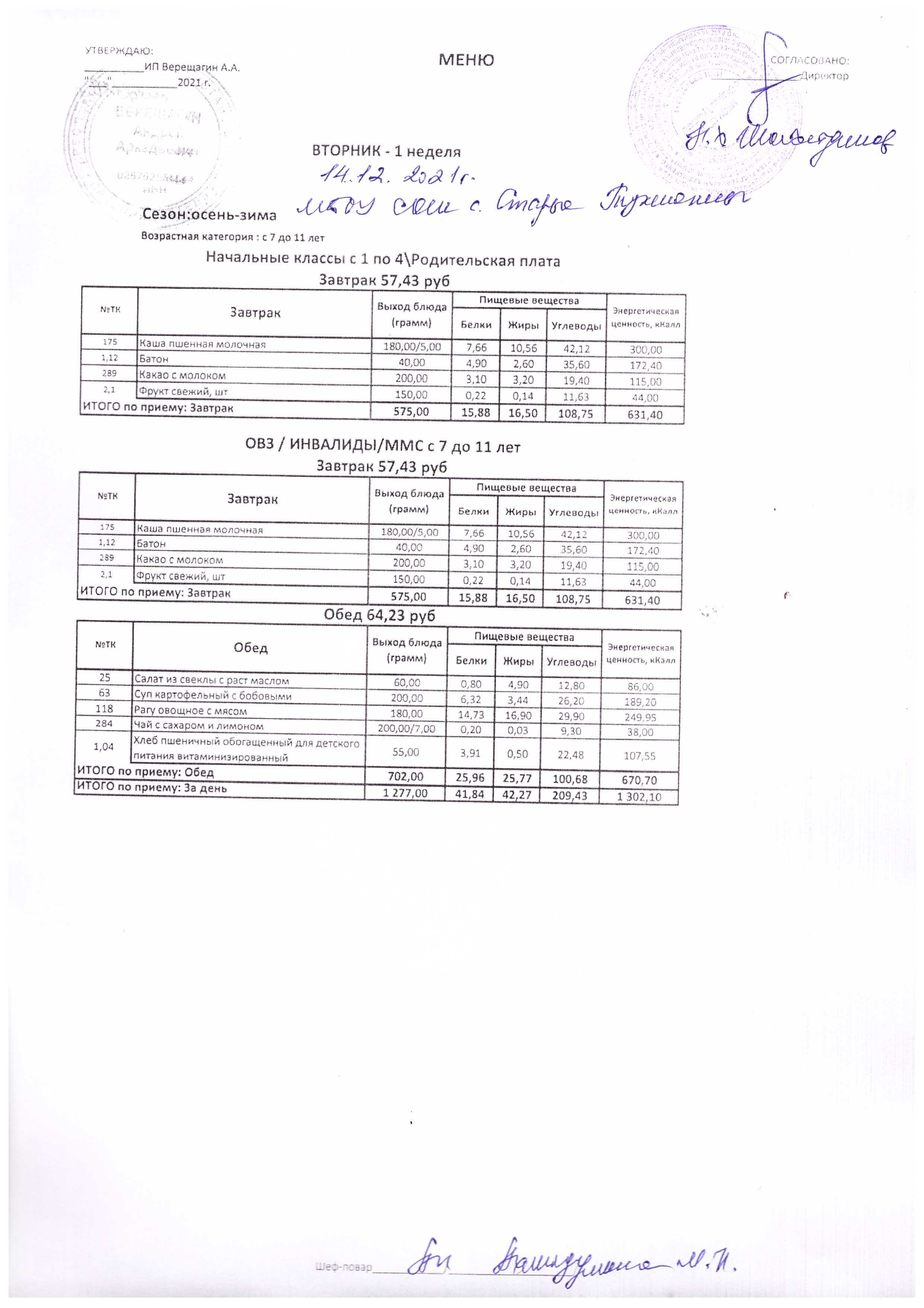 (Меню на 14.12.2021 г.)