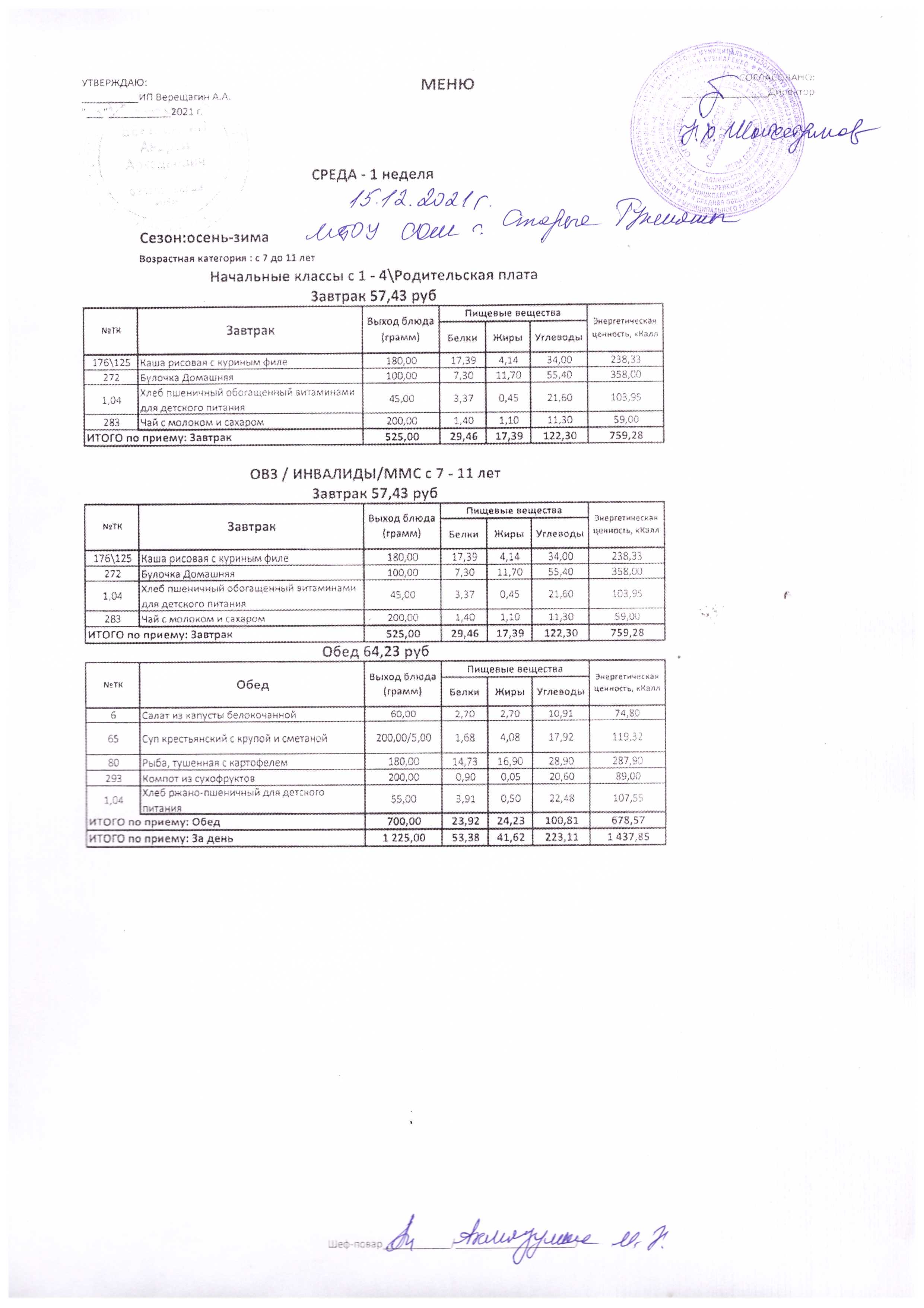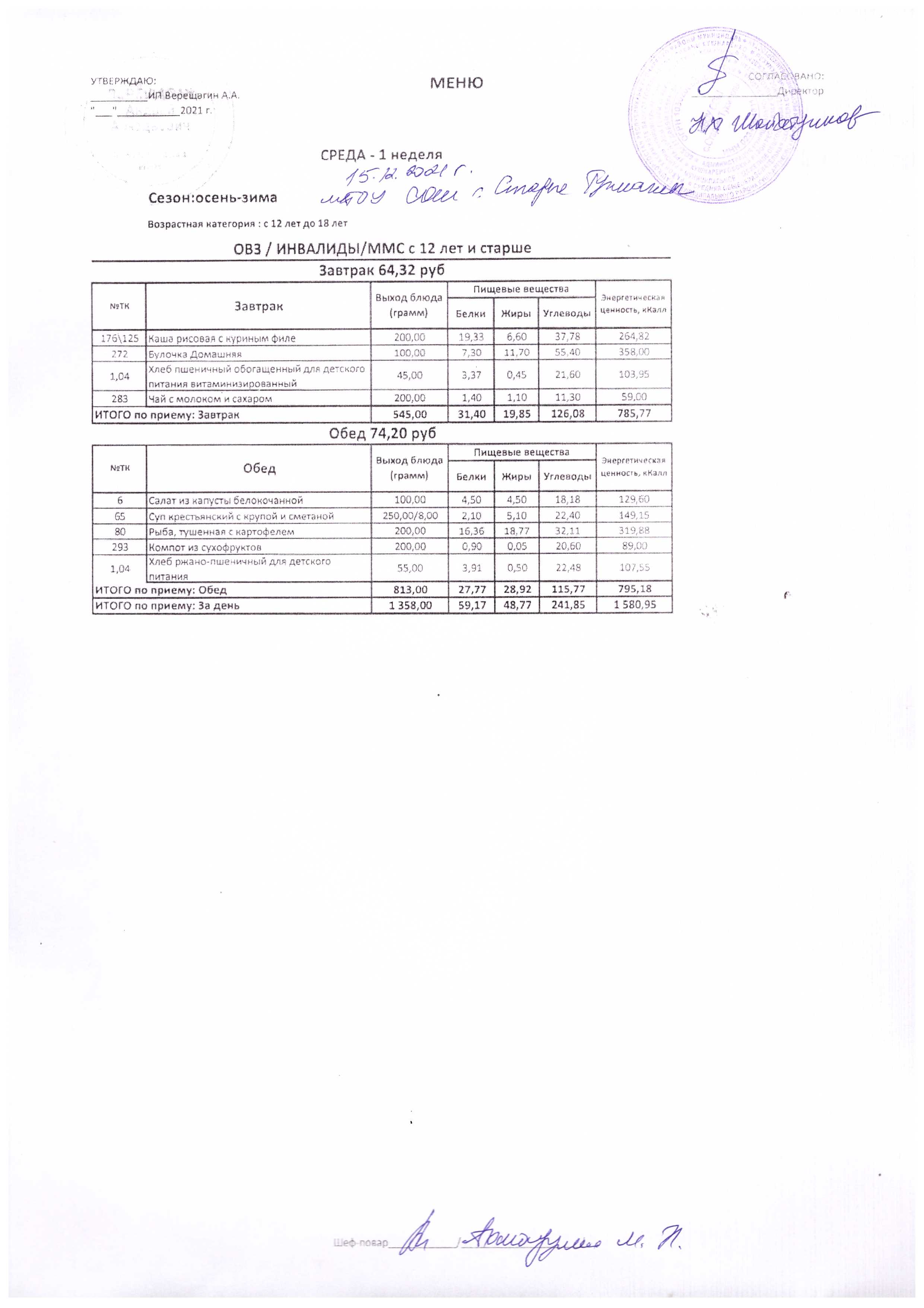 (Меню на 15.12.2021 г.)