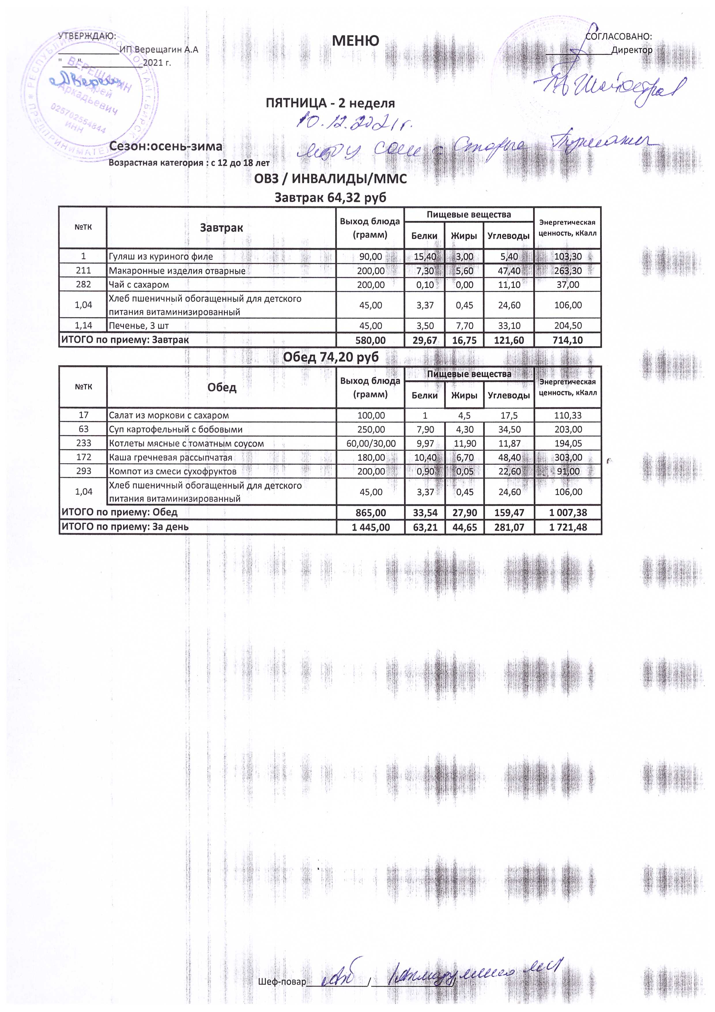 (Меню на 10.12.2021 г.)