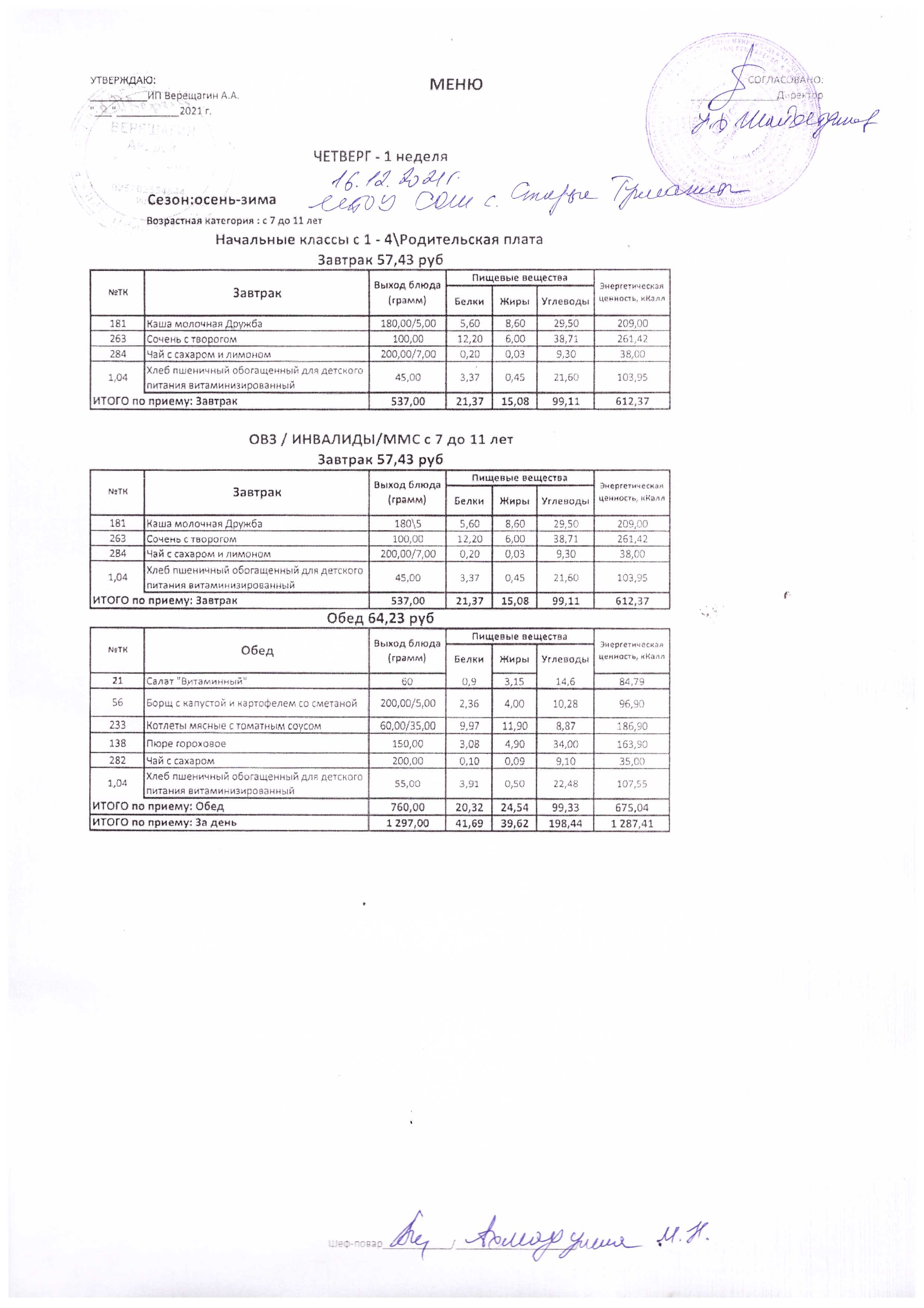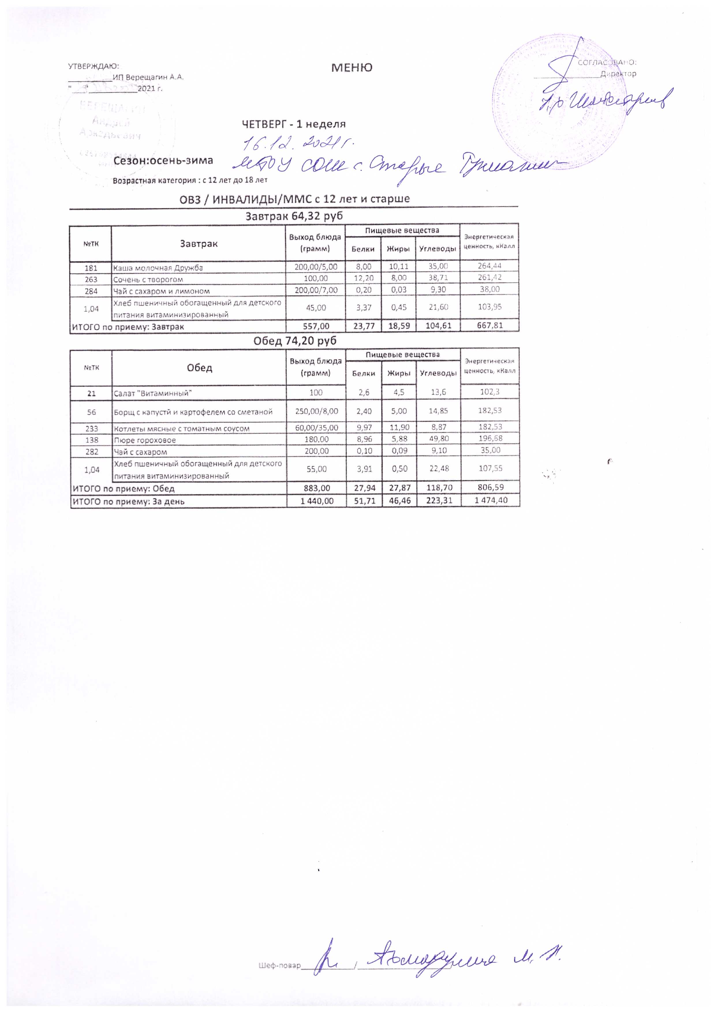 (Меню на 16.12.2021 г.)